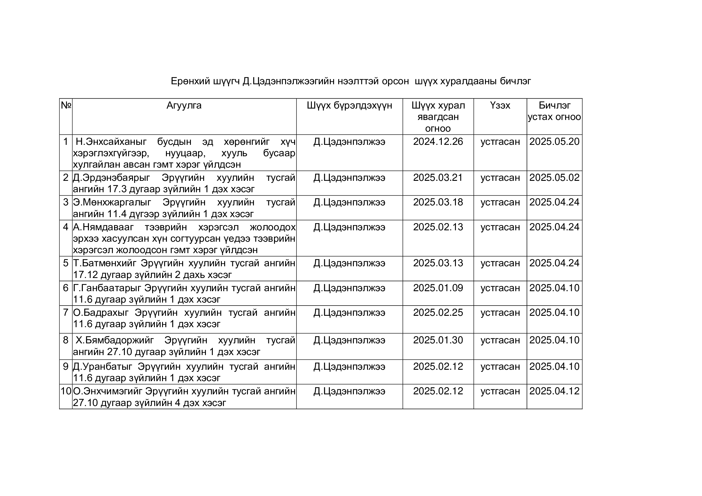 Шүүхийн ерөнхий зөвлөлийн даргын тушаал