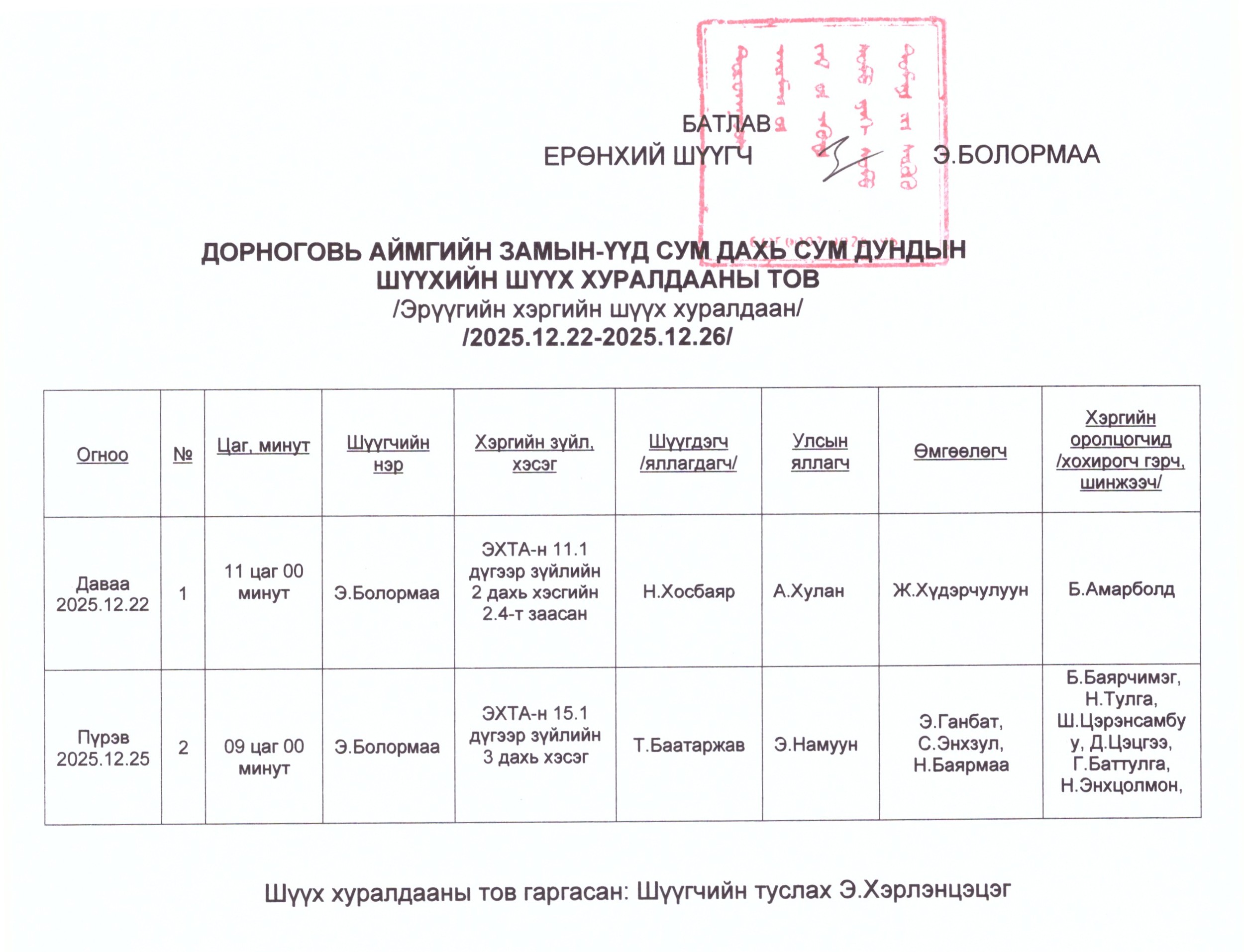 Шүүхийн ерөнхий зөвлөлийн даргын тушаал
