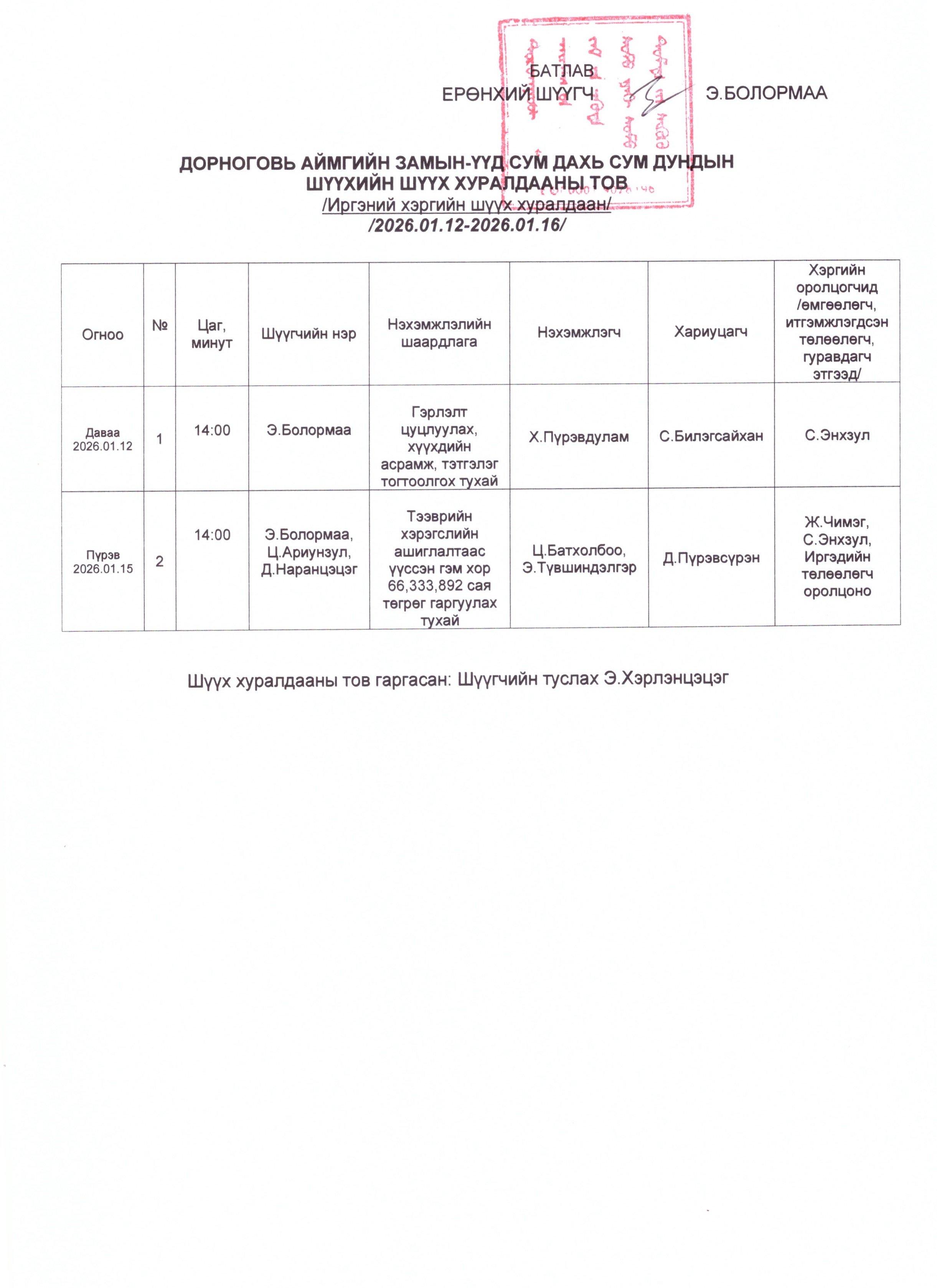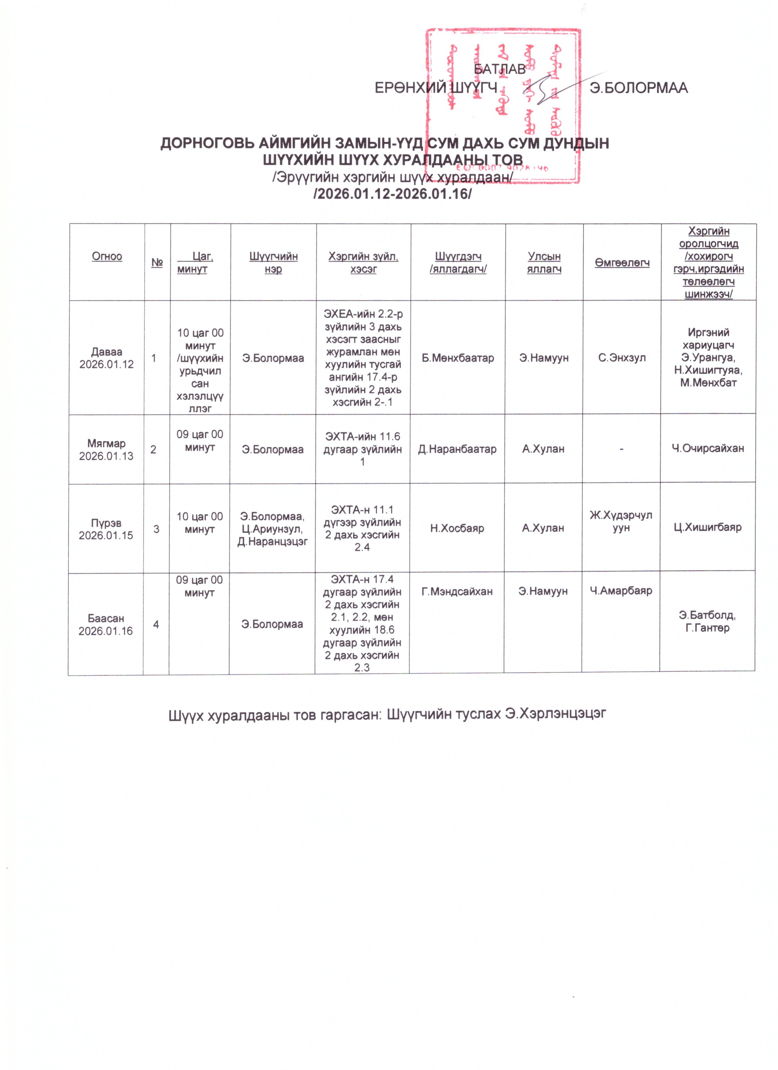 Шүүхийн ерөнхий зөвлөлийн даргын тушаал